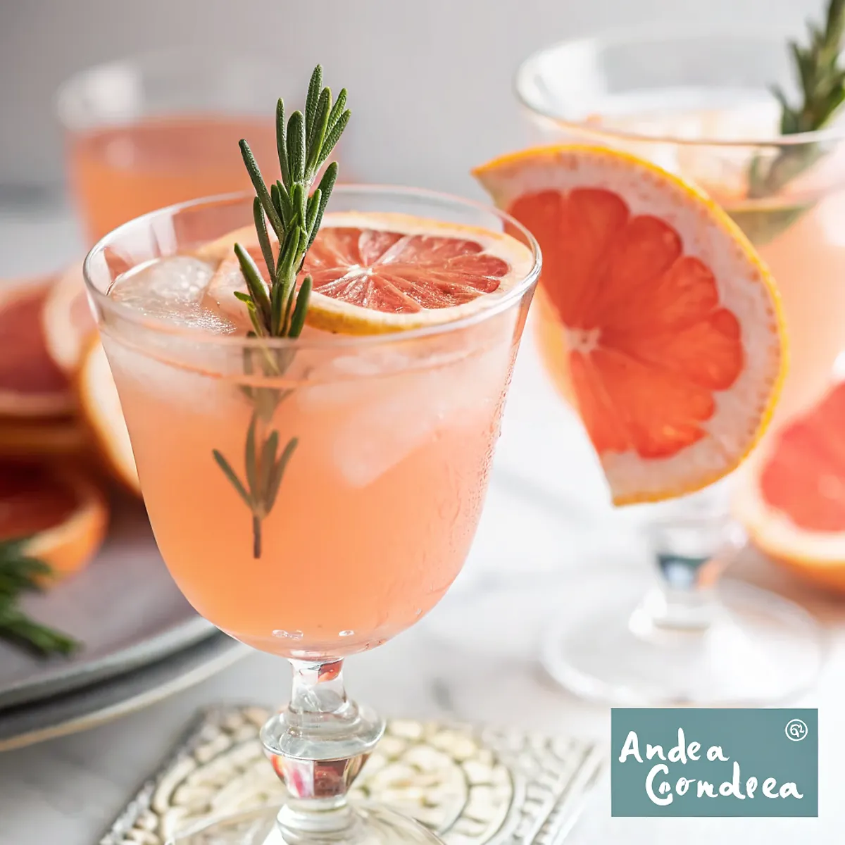 Multiply all ingredients proportionally. For parties, prepare the rosemary syrup and grapefruit mixture in advance, then add sparkling water just before serving. A good ratio is 1 part grapefruit mixture to 2 parts sparkling water when serving.